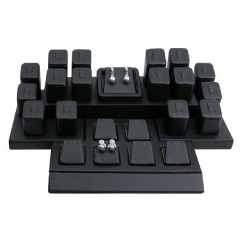 Description: Black Faux Leather 16-Ring & 7 Earring/Pendant Display Set. Availble in 3 colors, all black faux leather, all white faux leather and steel grey faux leather with black trim provide a sleek and modern solution for showcasing various products. The elegant black leatherette finish enhances the presentation, offering a professional and sophisticated look. Designed for both organization and protection, these displays ensure items are presented in a stylish and secure manner.
