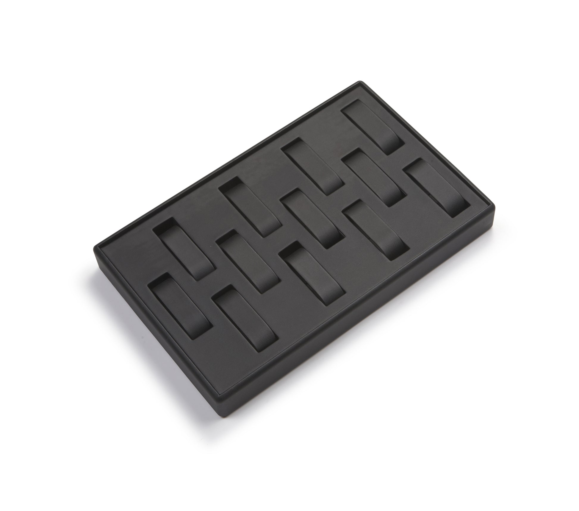 Description: Black Leatherette 12 Watch Display provide a sleek and professional way to showcase bracelets and watches. The refined black leatherette finish enhances the presentation, offering a modern and sophisticated look. Designed for both aesthetics and protection, these displays keep jewelry secure while ensuring an elegant display.