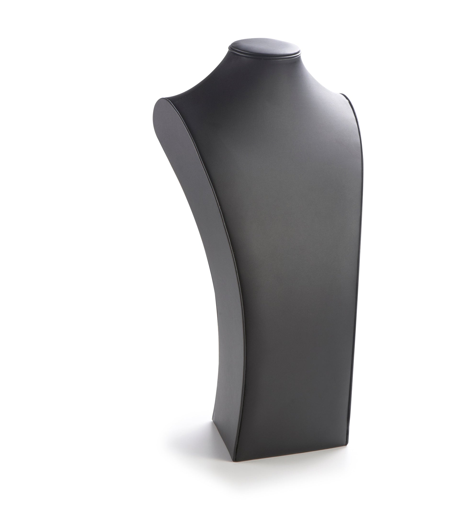 Description: Black Leatherette 2X-Large Neckform provide a sleek and elegant way to showcase necklaces. The refined black leatherette finish enhances the presentation, offering a modern and professional look. Designed for both aesthetics and protection, these displays keep necklaces secure while drawing attention to their details.