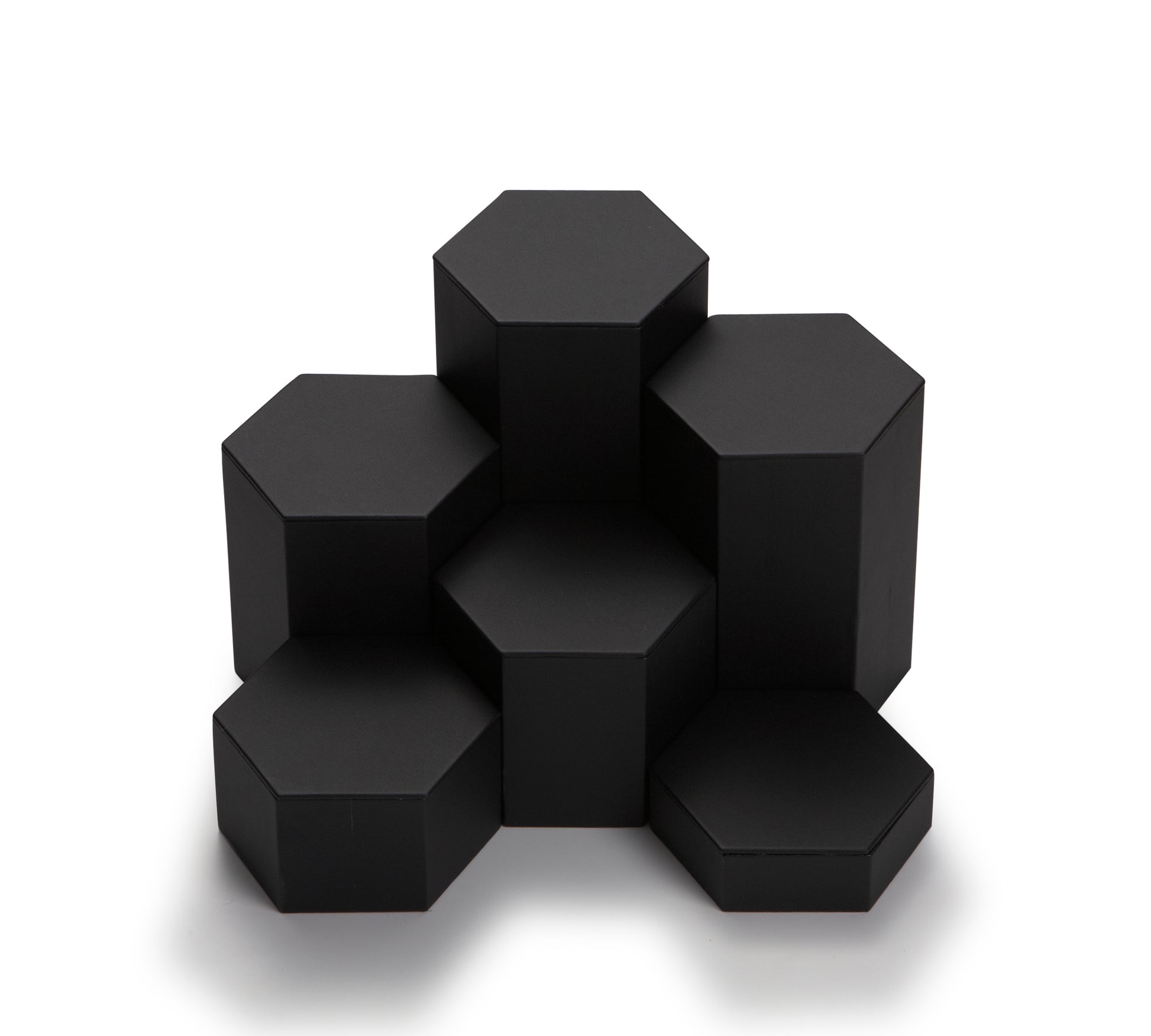 Description: Black Leatherette 6 Pcs Hexagon Risers.