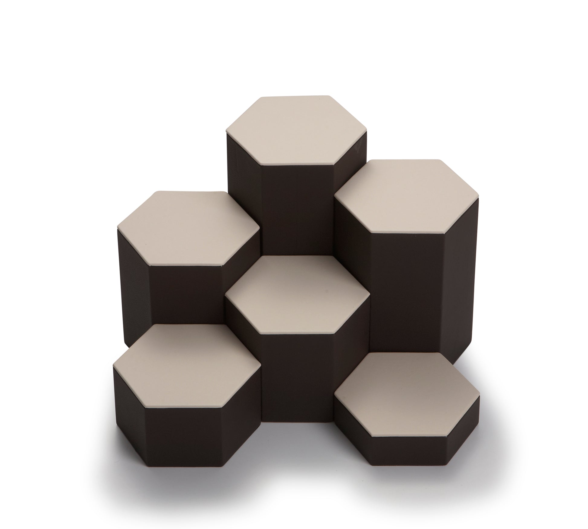 Description: Chocolate/Beige Leatherette 6 PCs Hexagon Risers each one at a different height provides a sleek and spacious solution for displaying various items. The sophisticated chocolate and beige leatherette finish adds a touch of elegance while ensuring a professional and organized presentation.