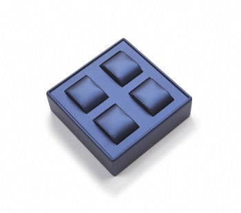 Description: Navy Blue Leatherette Stackable 4 Watch Tray offers a refined and protective way to organize up to four watches. The sleek navy blue leatherette finish enhances its sophisticated appeal while ensuring durability. Its stackable design makes it ideal for optimizing space in retail displays, exhibitions, or personal collections.