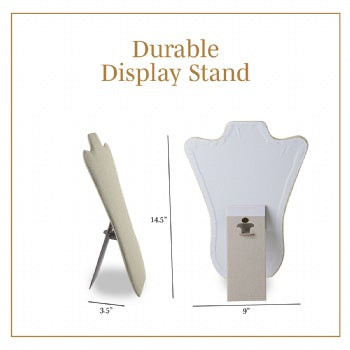 Description: Large necklace and pendant display easel featuring a natural neckline design for optimal viewing. The easel extends to showcase necklaces at an easy-to-see angle and collapses flat for convenient storage and transport. Covered in soft, durable black velvet, it enhances contrast for jewelry of all colors and materials.