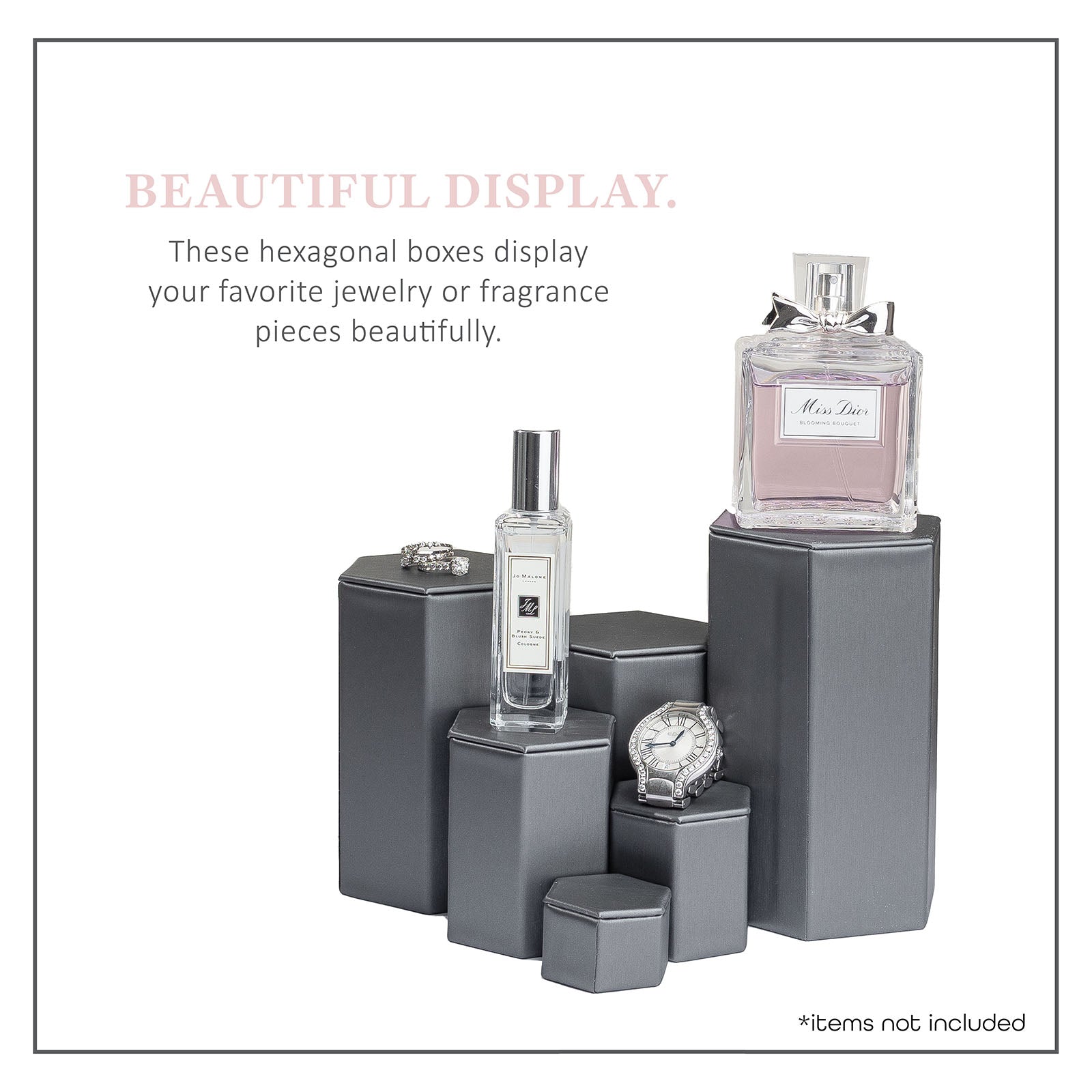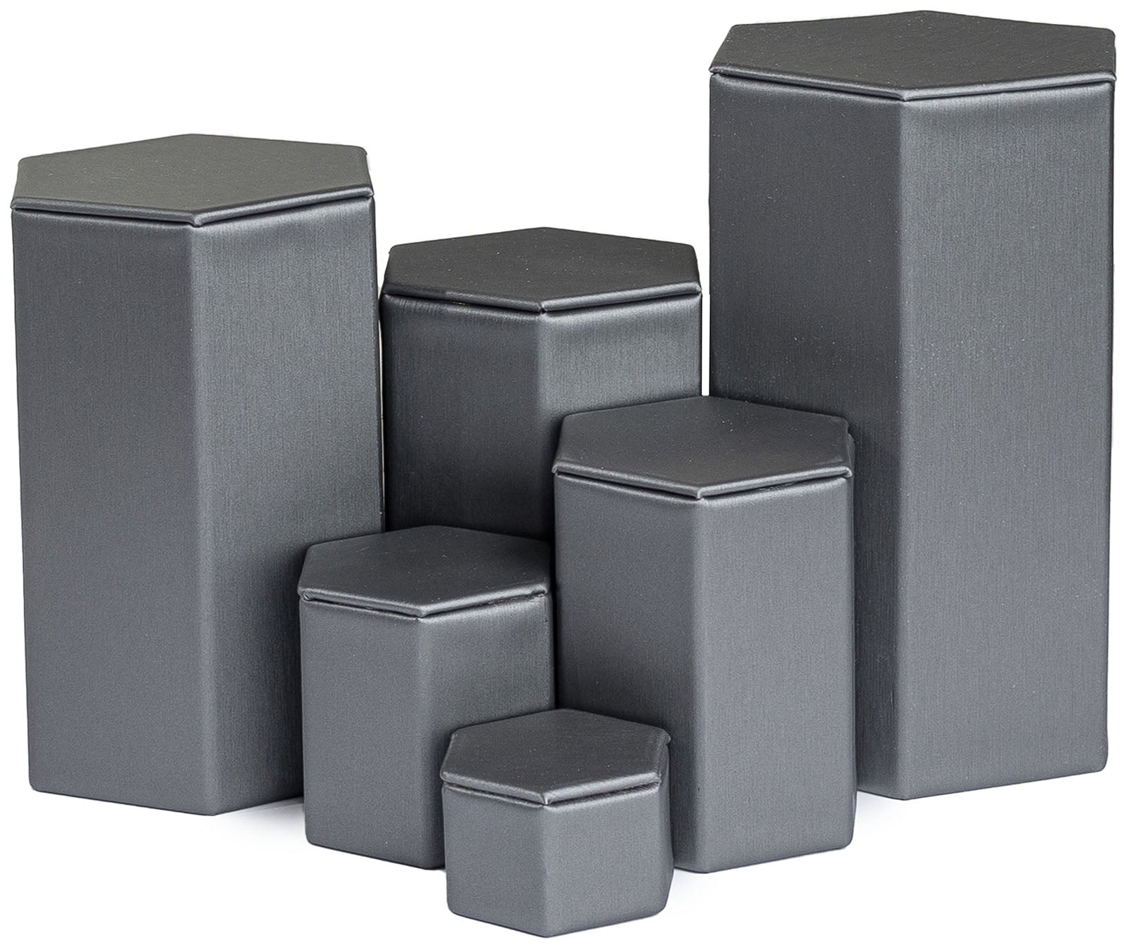 Novel Box Leatherette 6 Pc Hexagonal Risers In Brushed Steel Gray