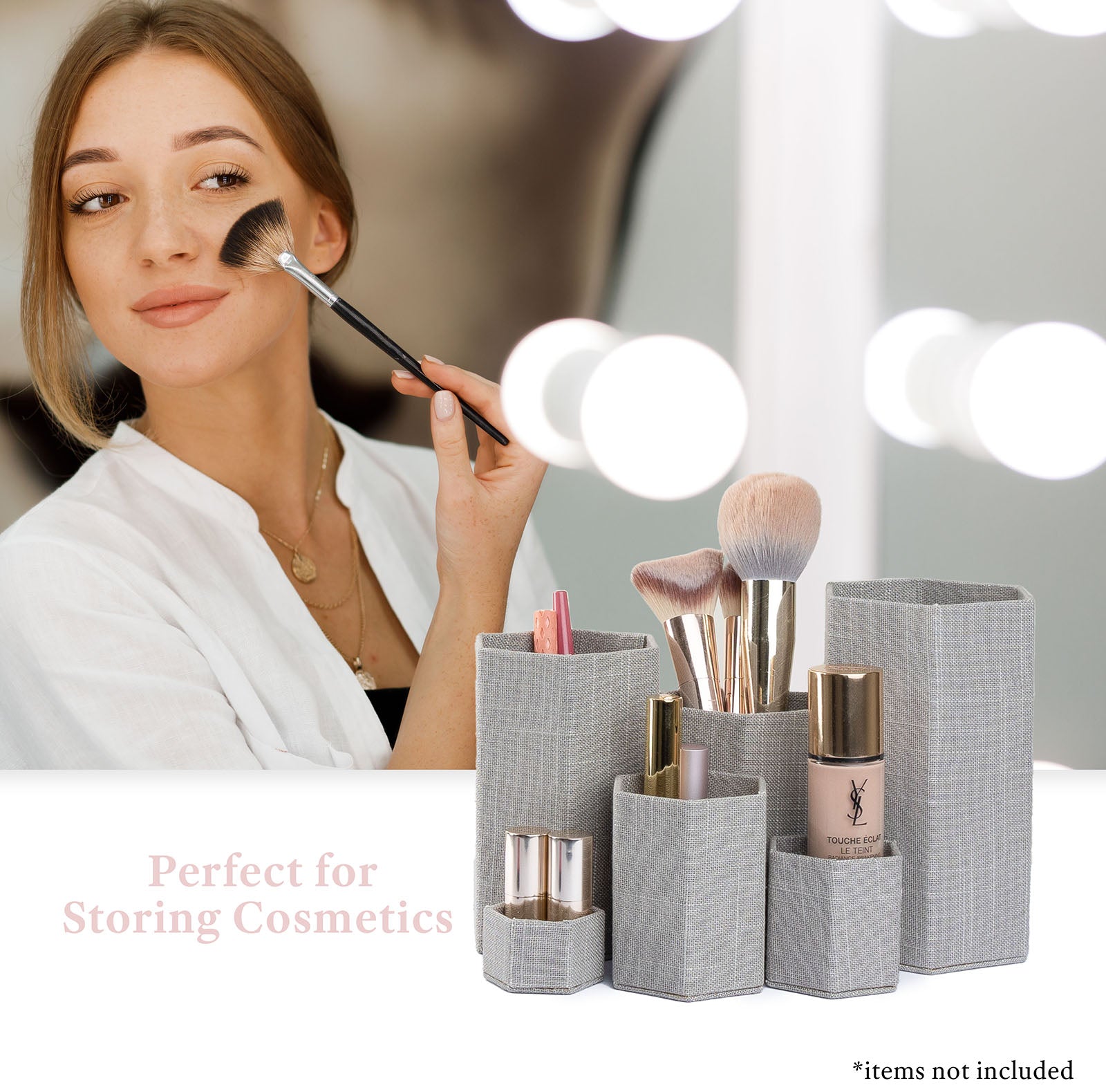 Description: Set of 6 hexagonal display risers that can be used to stagger the heights of your display, creating an eye-catching array of glamour (and interest from your customers). Boxes measure: 6.25" X 4"; 5.25" X 3.5"; 4.25" X 3.5"; 3.25" X 3"; 2.25" X 2"; 1.25" X 2" and are covered in soft, durable white leatherette, providing great contrast for jewelry, collectibles and other items. High-quality Reliable and long-lasting acrylic material, not easy to break or deform, safe to use Hexagonal shapes design The shape and color are classic and elegant, which suit different decoration styles Graduated risers are made of sturdy cardboard and are also hollow so they can be nested inside each other, saving space for easy storage and transport. Can be used horizontally or vertically to display and highlight rings, watches, eyewear, cosmetics and even figurines!