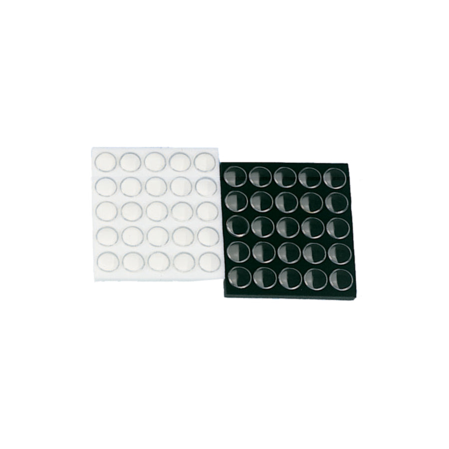 NOVEL BOX’s Round Gem Jar Liner with 25 Jars is a reliable storage and display solution for gemstones, beads, and body jewelry. Measuring 14 1/2" x 7 7/8" x 3/4", this foam liner includes 25 large acrylic jars, each with a 1 3/4" diameter and a secure pop-on lid. Each jar contains a foam insert to provide added protection and organization. Designed to fit all standard full-size trays, this liner is perfect for jewelers, collectors, and retailers looking to neatly separate and showcase their products by size, color, and type.