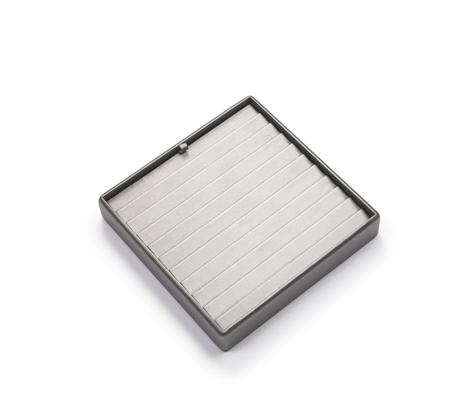 Description: Silver Gray Leatherette 10 Bracelet Tray provides an elegant and organized solution for displaying up to 10 bracelets. Featuring a sleek silver gray leatherette finish, this tray combines durability with sophistication, making it perfect for retail displays or personal collections.