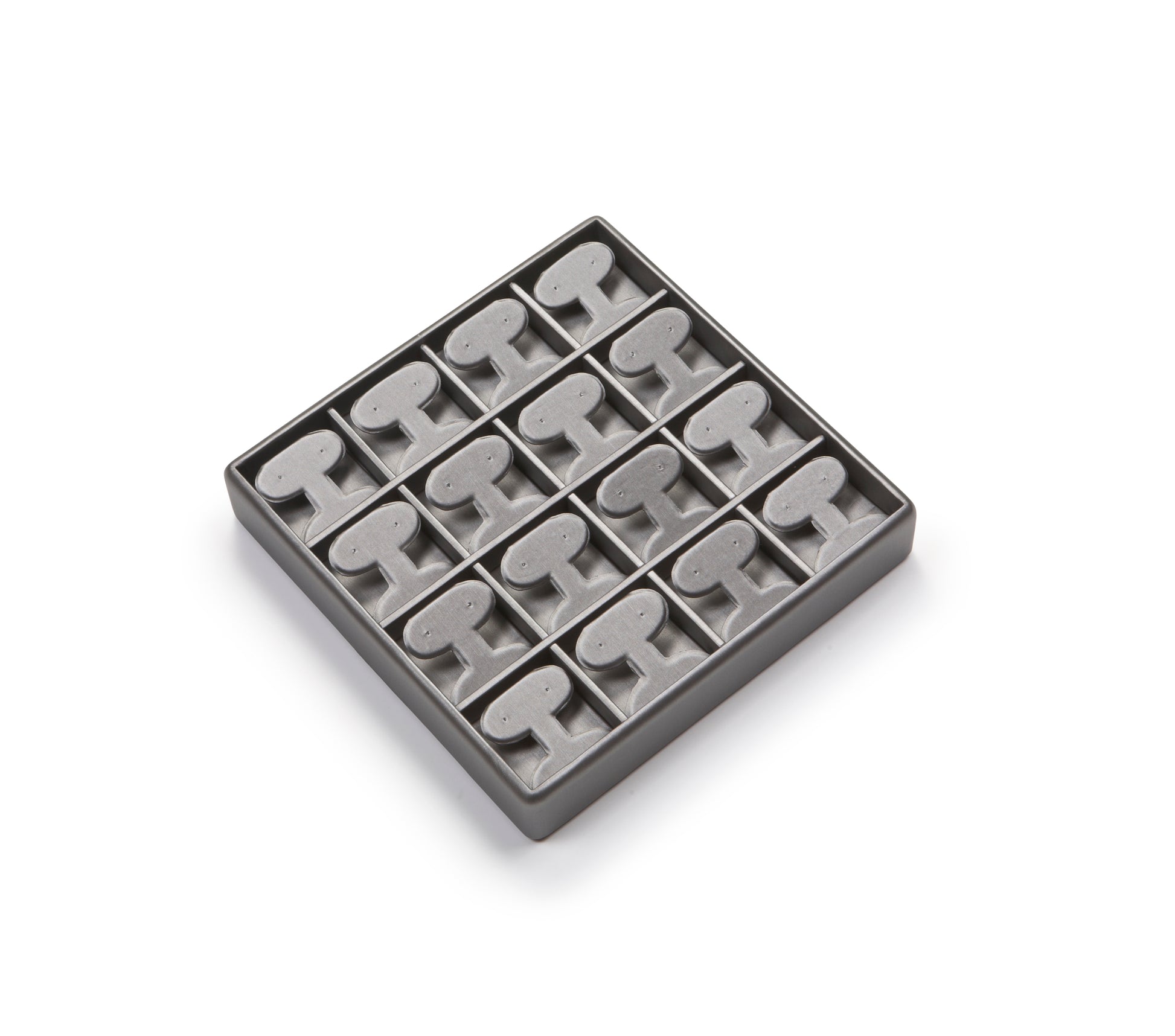 Description: Silver Gray Leatherette 16 Earring Tree Tray features a clean and modern design, perfect for displaying up to 16 pairs of earrings. The elegant silver gray leatherette material enhances the presentation of your jewelry while offering protection.