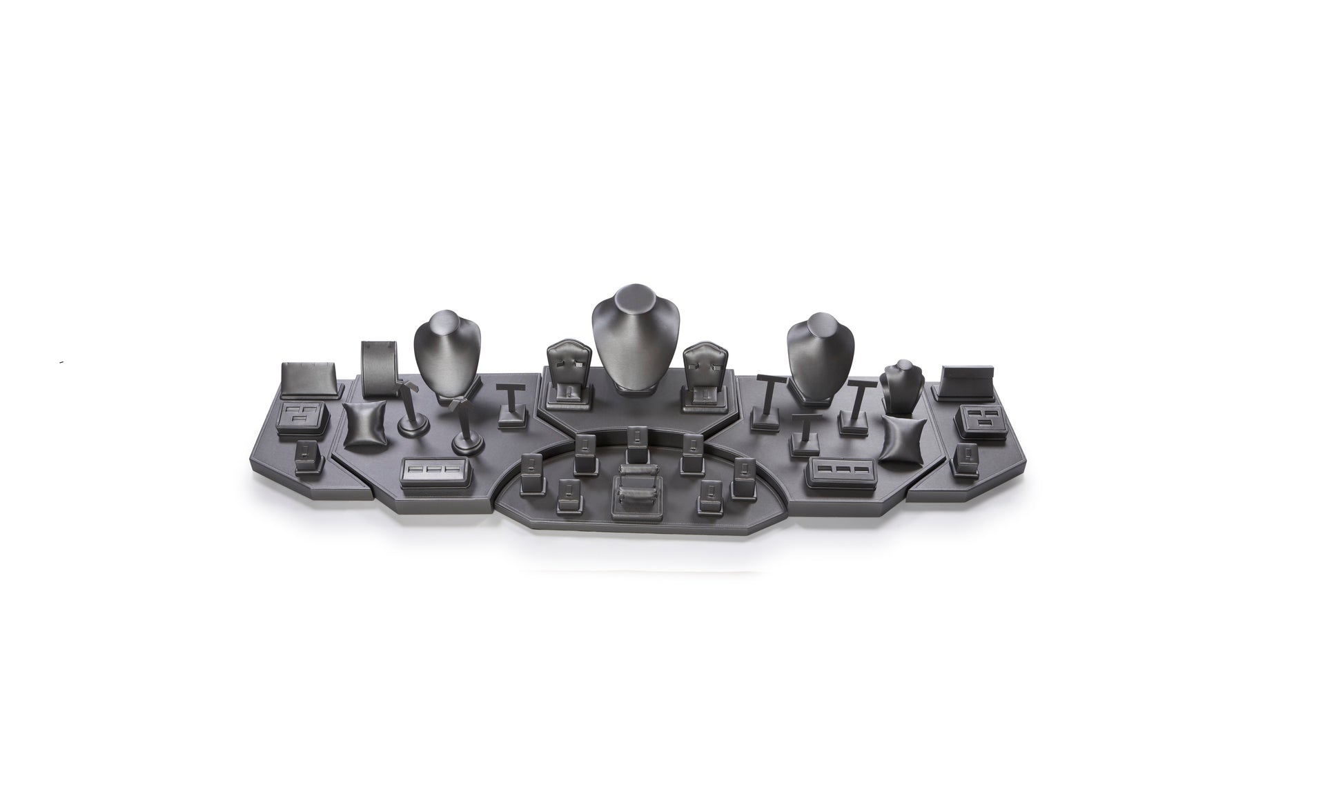 Description: Silver Gray Leatherette 5' Showcase Display Set offers a sophisticated and stylish solution for presenting your jewelry or other small items. The large, 5-foot display features a sleek silver gray leatherette finish that elevates the look of any showcase, making it perfect for retail or trade show settings.