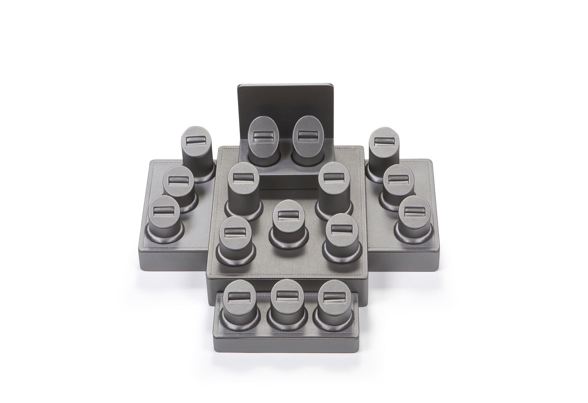 Description: Silver Gray Leatherette Showcase Display Set offers a refined and durable display solution for your products. Featuring a sleek silver gray leatherette finish, this set provides a stylish way to present jewelry, accessories, or small collectibles, adding sophistication to any retail or exhibition space.