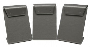 Description: This steel gray leatherette fabric-covered earring and pendant display offers a sleek and stylish way to showcase your jewelry. Its compact yet sturdy design serves as a perfect backdrop, making it ideal for both retail and personal use.