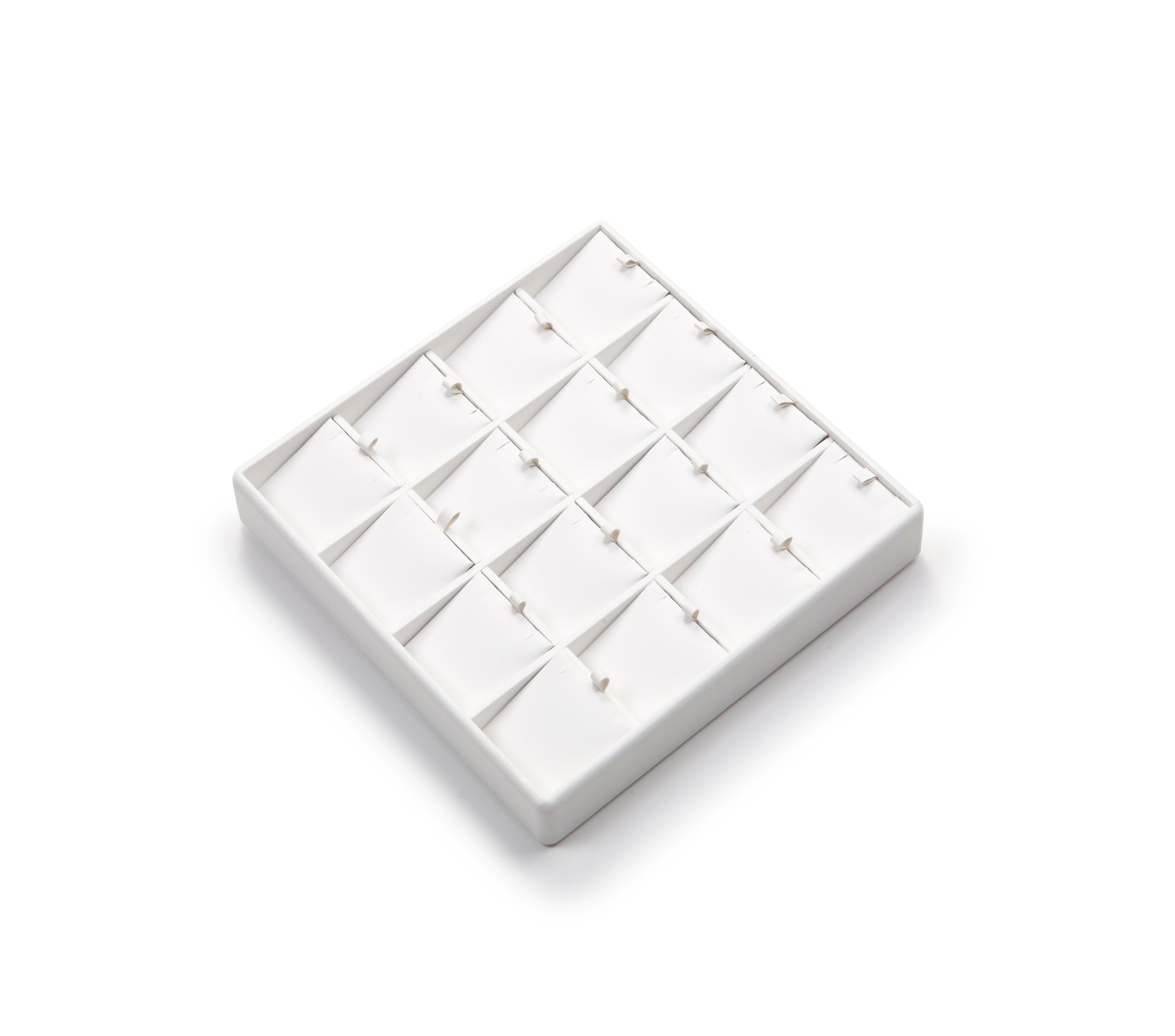 Description: White Leatherette 16 Pendant Tray designed to elegantly display and organize up to 16 pendants. The soft white leatherette finish enhances the presentation, making it ideal for jewelry stores, trade shows, or personal collections. Its structured compartments ensure secure placement while maintaining a professional and stylish display.