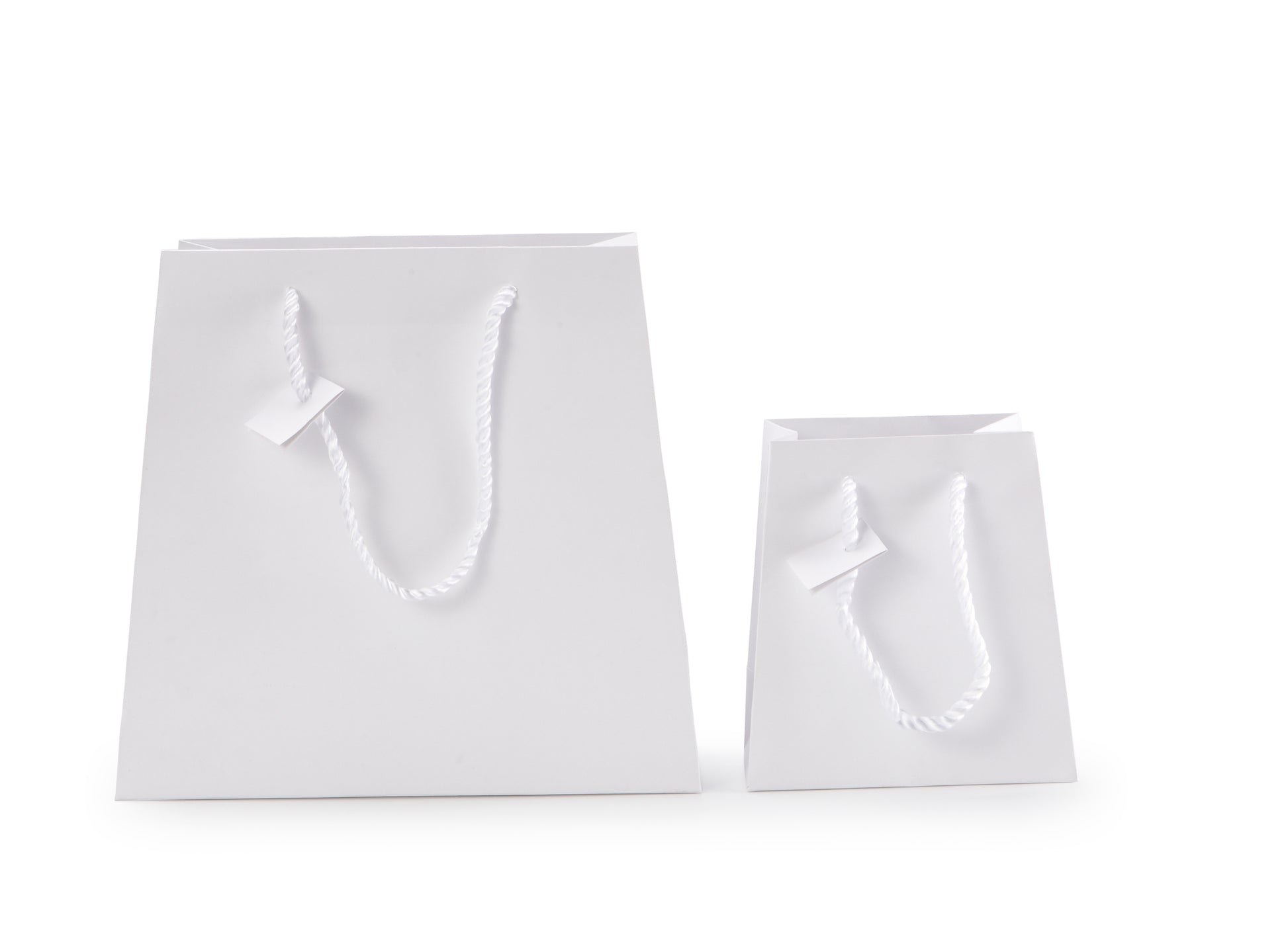 White Matte Laminated Bags with Rope Handle. (Small Bag pictured)